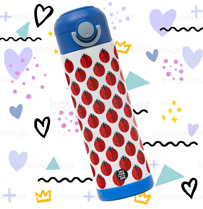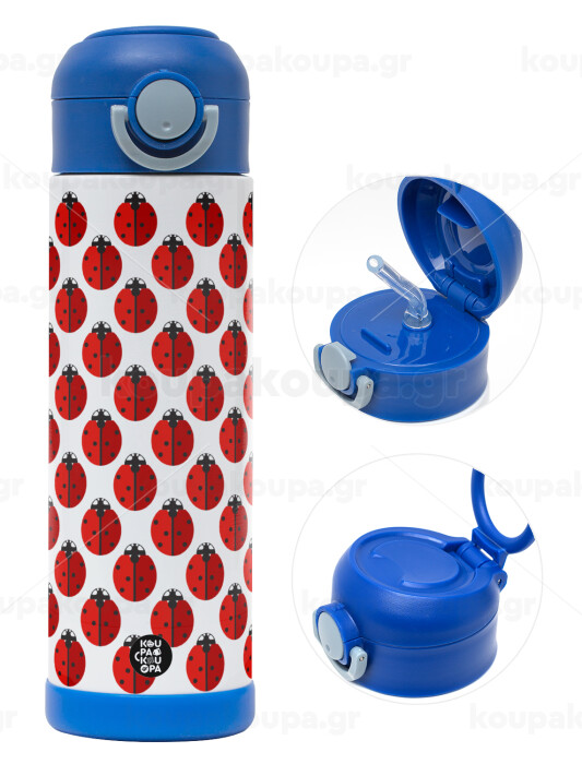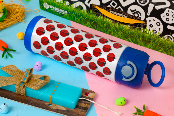 Coccinella, Easter candle, Childrens hot water bottle, stainless steel, with safety straw, BLUE (500ml)