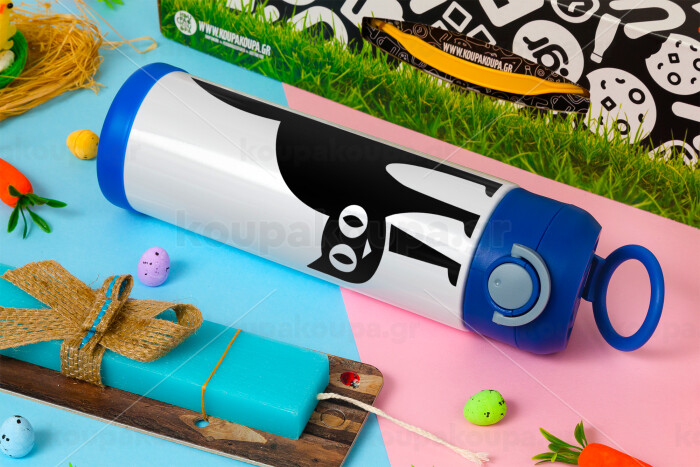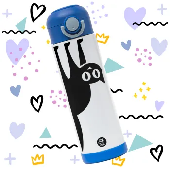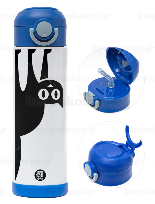 Cat upside down, Easter candle, Childrens hot water bottle, stainless steel, with safety straw, BLUE (500ml)