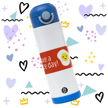 Have a nice day Emoji, Easter candle, Childrens hot water bottle, stainless steel, with safety straw, BLUE (500ml)