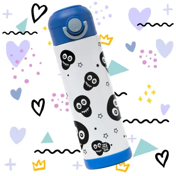 Skull avatar, Easter candle, Childrens hot water bottle, stainless steel, with safety straw, BLUE (500ml)