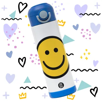 Smile classic, Easter candle, Childrens hot water bottle, stainless steel, with safety straw, BLUE (500ml)
