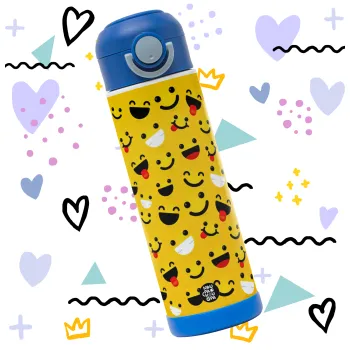Smilies , Easter candle, Childrens hot water bottle, stainless steel, with safety straw, BLUE (500ml)
