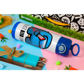 Among Trust no one, Easter candle, Childrens hot water bottle, stainless steel, with safety straw, BLUE (500ml)