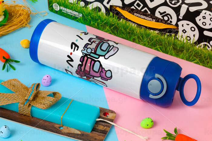 Among US Friends, Easter candle, Childrens hot water bottle, stainless steel, with safety straw, BLUE (500ml)