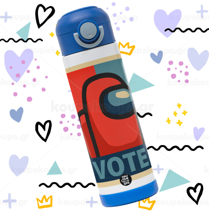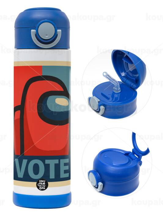 Among US VOTE, Easter candle, Childrens hot water bottle, stainless steel, with safety straw, BLUE (500ml)