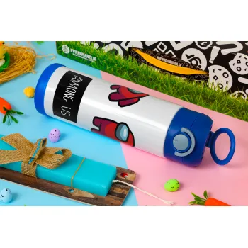 Among US, Easter candle, Childrens hot water bottle, stainless steel, with safety straw, BLUE (500ml)