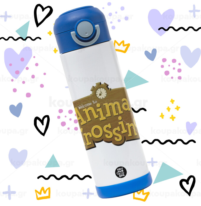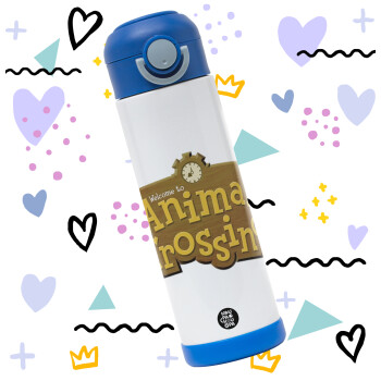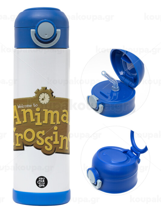 Animal Crossing, Easter candle, Childrens hot water bottle, stainless steel, with safety straw, BLUE (500ml)