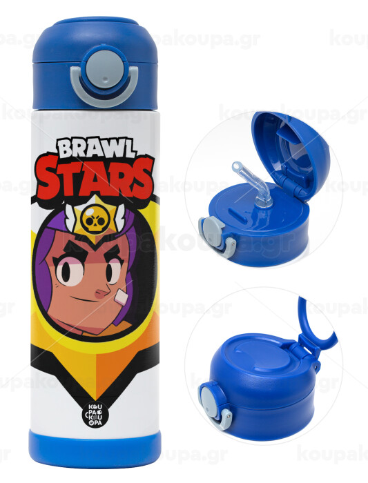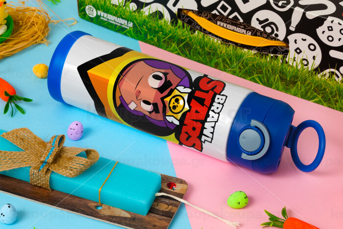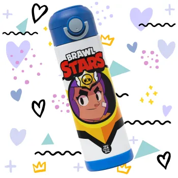 Brawl Stars Shelly, Easter candle, Childrens hot water bottle, stainless steel, with safety straw, BLUE (500ml)