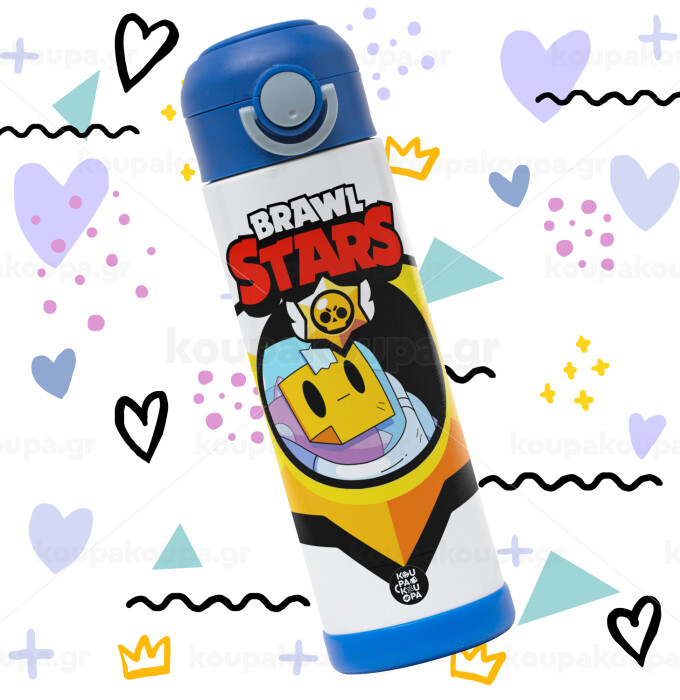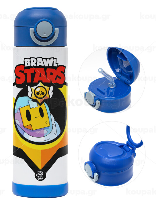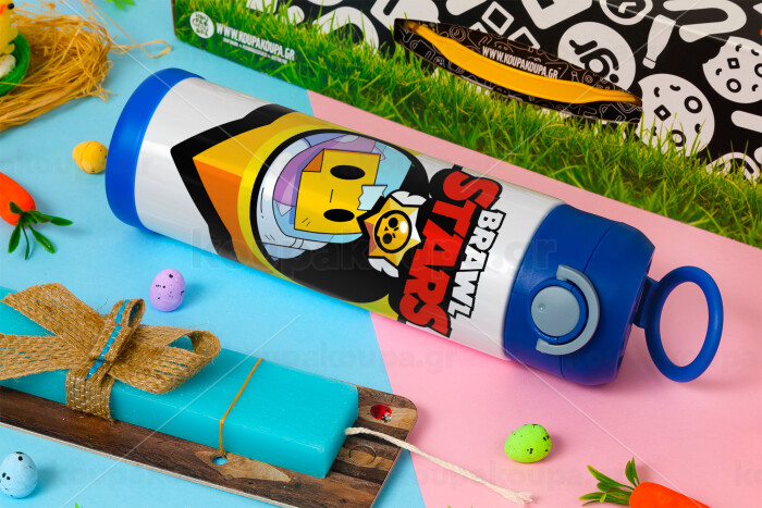 Brawl Stars Sprout, Easter candle, Childrens hot water bottle, stainless steel, with safety straw, BLUE (500ml)