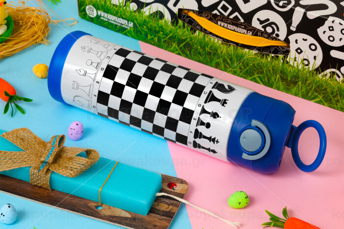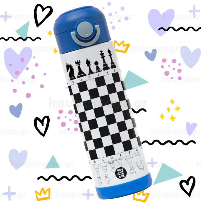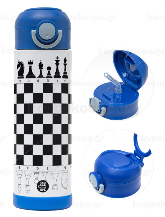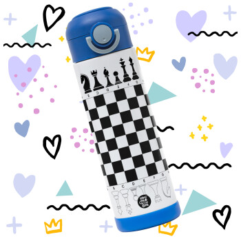 Chess, Easter candle, Childrens hot water bottle, stainless steel, with safety straw, BLUE (500ml)