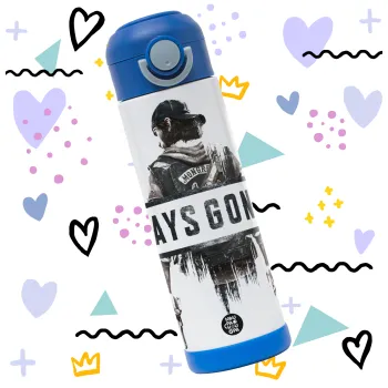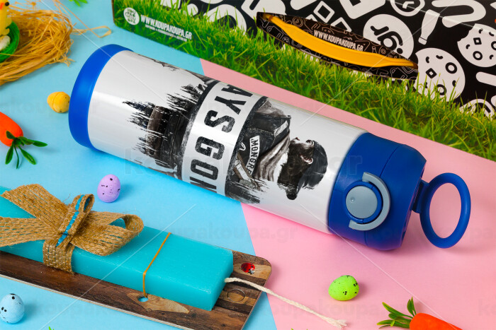 Day's Gone, Easter candle, Childrens hot water bottle, stainless steel, with safety straw, BLUE (500ml)