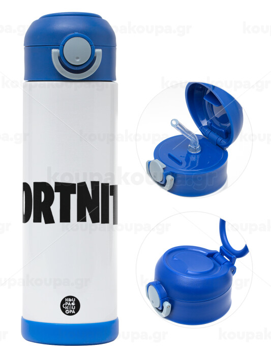 Fortnite landscape, Easter candle, Childrens hot water bottle, stainless steel, with safety straw, BLUE (500ml)