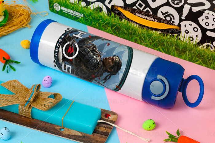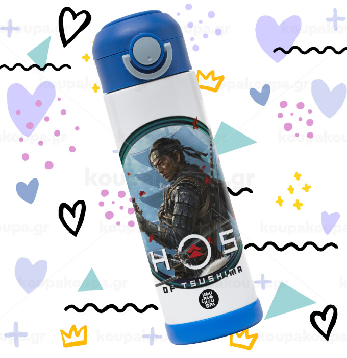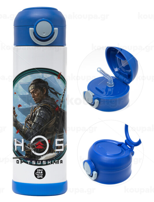 Ghost of Tsushima, Easter candle, Childrens hot water bottle, stainless steel, with safety straw, BLUE (500ml)