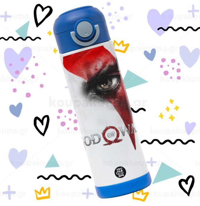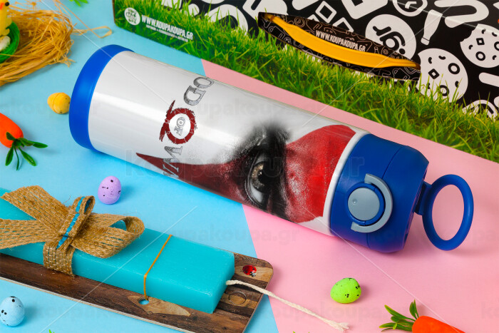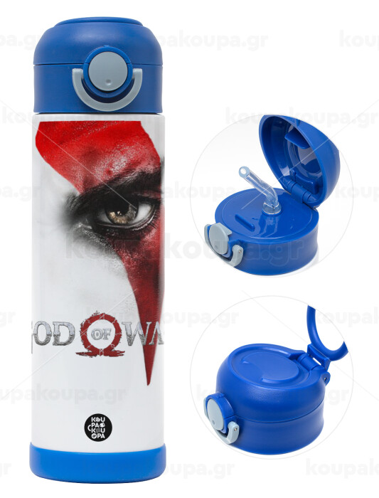God of war Stratos, Easter candle, Childrens hot water bottle, stainless steel, with safety straw, BLUE (500ml)