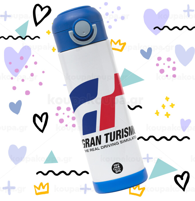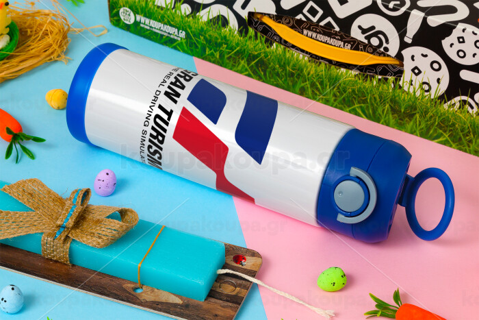 gran turismo, Easter candle, Childrens hot water bottle, stainless steel, with safety straw, BLUE (500ml)