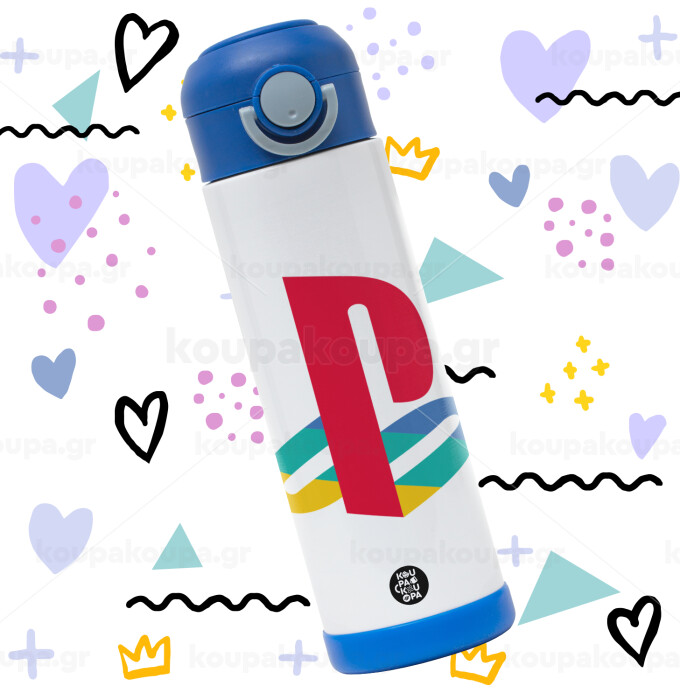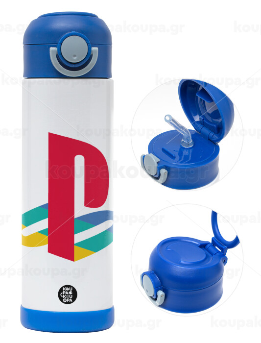 Playstation, Easter candle, Childrens hot water bottle, stainless steel, with safety straw, BLUE (500ml)