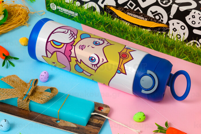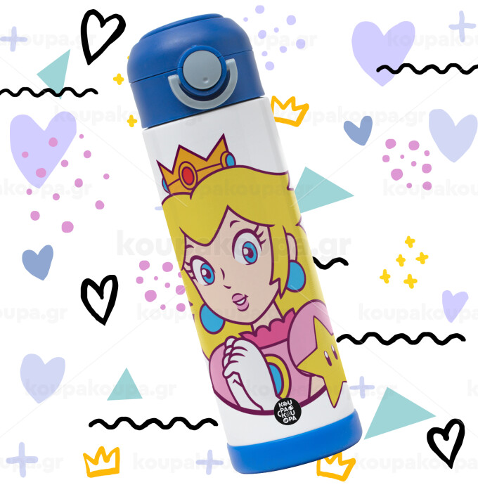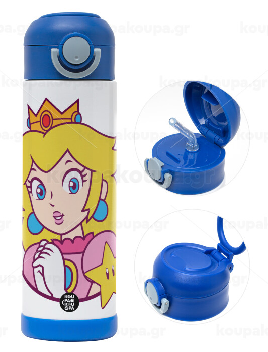 Princess Peach, Easter candle, Childrens hot water bottle, stainless steel, with safety straw, BLUE (500ml)