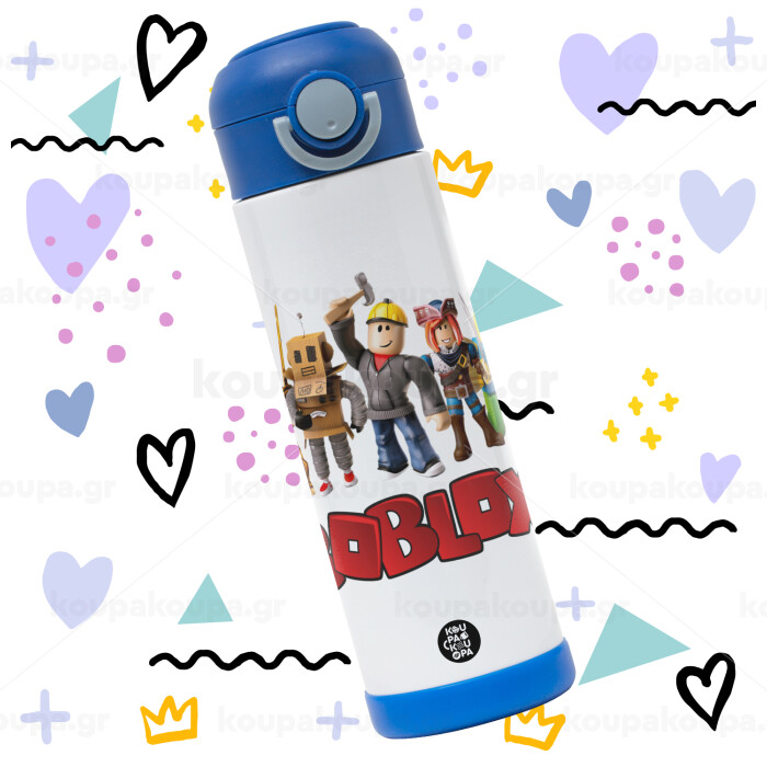 Roblox squad, Easter candle, Childrens hot water bottle, stainless steel, with safety straw, BLUE (500ml)