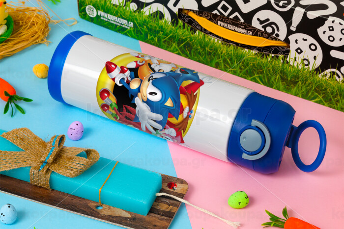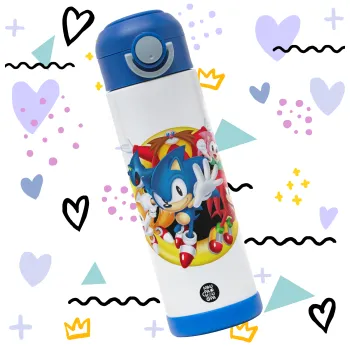 Sonic and friends, Easter candle, Childrens hot water bottle, stainless steel, with safety straw, BLUE (500ml)