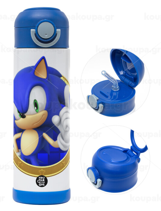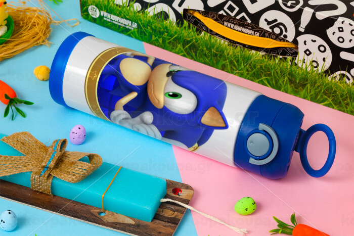 Sonic the hedgehog, Easter candle, Childrens hot water bottle, stainless steel, with safety straw, BLUE (500ml)