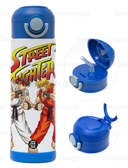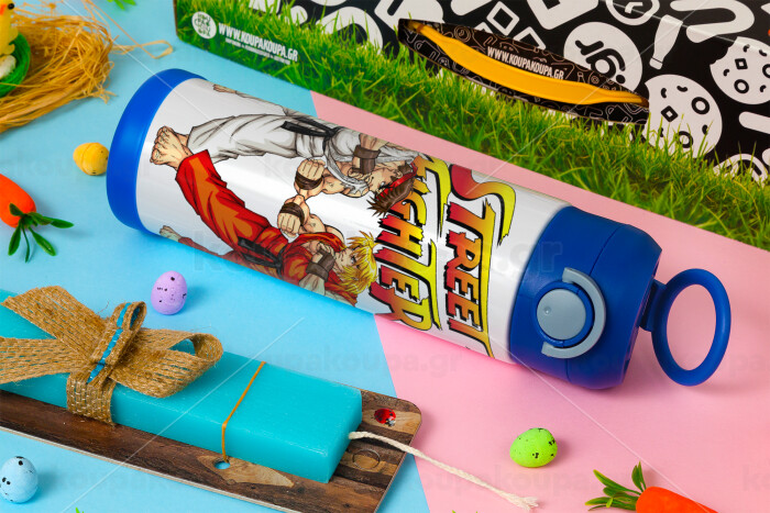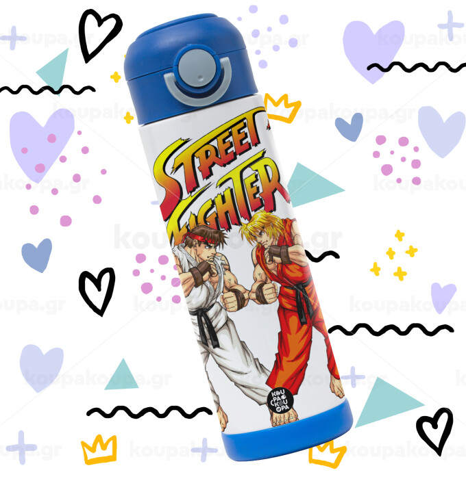 Street fighter, Easter candle, Childrens hot water bottle, stainless steel, with safety straw, BLUE (500ml)