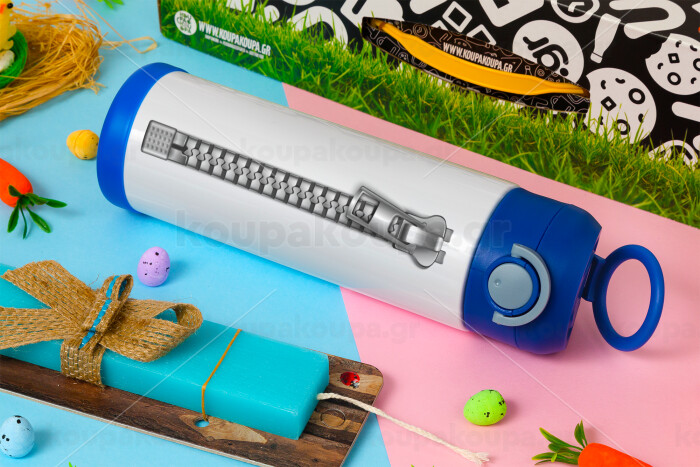 Zipper, Easter candle, Childrens hot water bottle, stainless steel, with safety straw, BLUE (500ml)