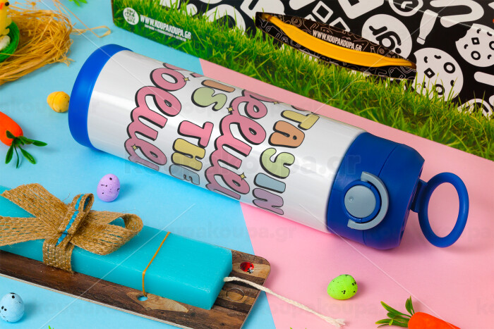 Delulu, Easter candle, Childrens hot water bottle, stainless steel, with safety straw, BLUE (500ml)
