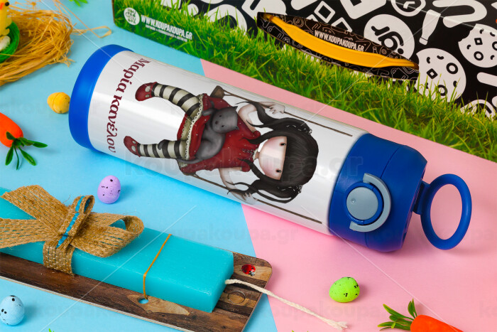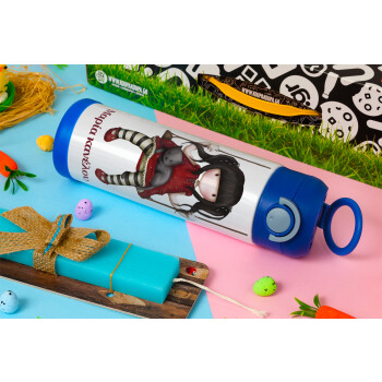 Santoro, Easter candle, Childrens hot water bottle, stainless steel, with safety straw, BLUE (500ml)
