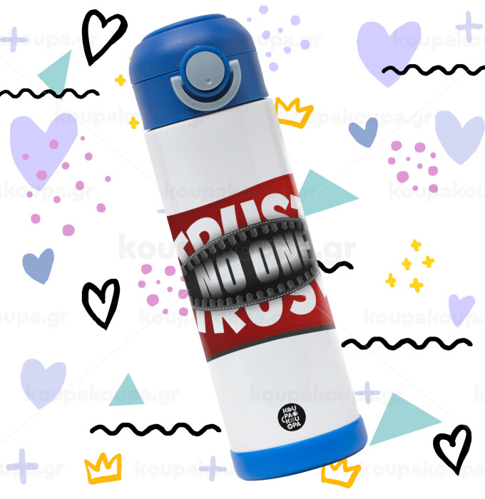 Trust no one... (zipper), Easter candle, Childrens hot water bottle, stainless steel, with safety straw, BLUE (500ml)