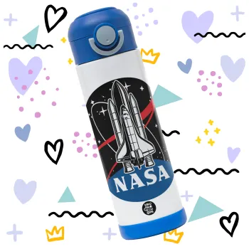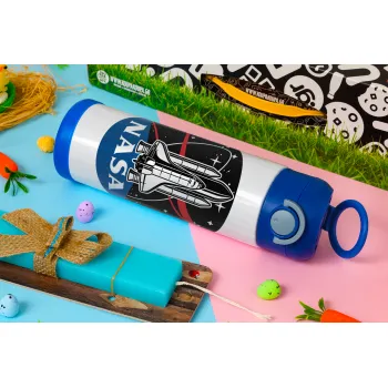 NASA Badge, Easter candle, Childrens hot water bottle, stainless steel, with safety straw, BLUE (500ml)