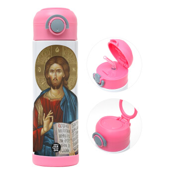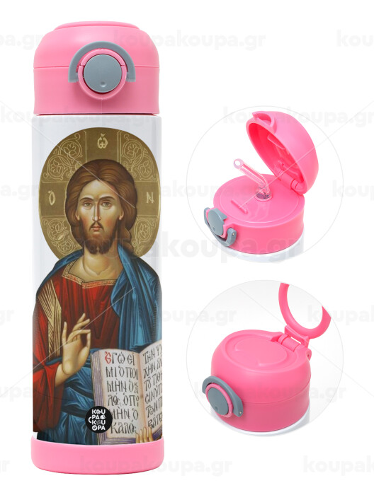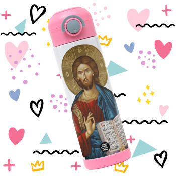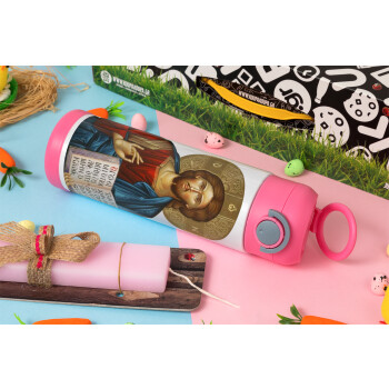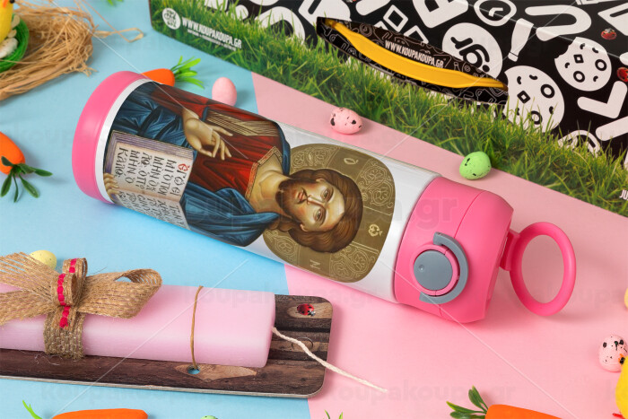 Jesus, Easter candle, Childrens hot water bottle, stainless steel, with safety straw, PINK (500ml)