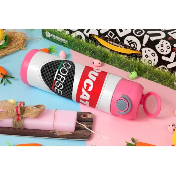 Ducati, Easter candle, Childrens hot water bottle, stainless steel, with safety straw, PINK (500ml)