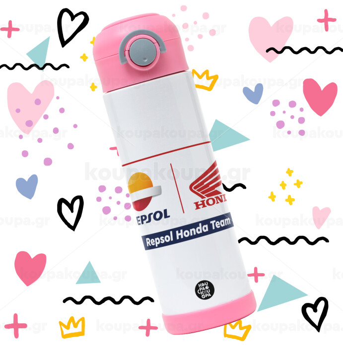 Honda Repsol Team, Easter candle, Childrens hot water bottle, stainless steel, with safety straw, PINK (500ml)