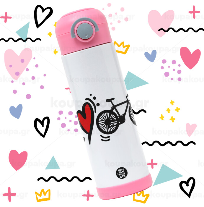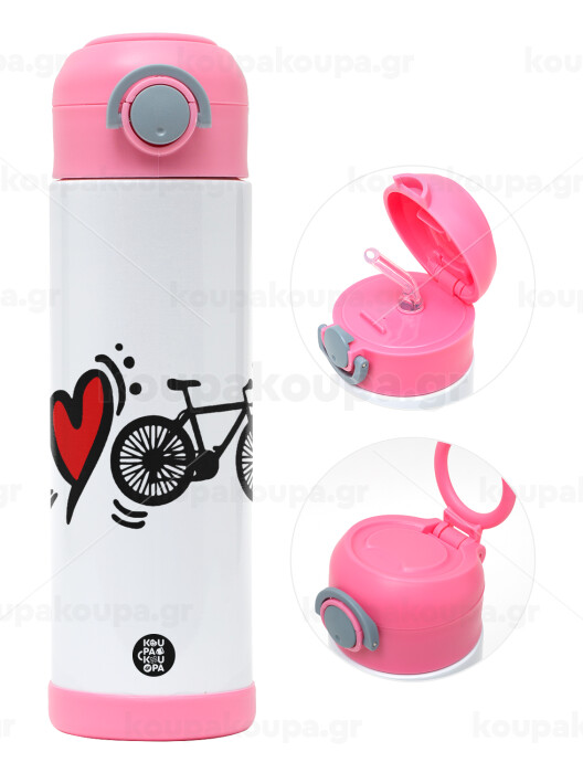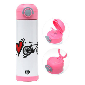 I love my bike, Easter candle, Childrens hot water bottle, stainless steel, with safety straw, PINK (500ml)
