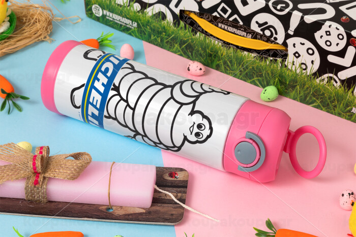 Michelin, Easter candle, Childrens hot water bottle, stainless steel, with safety straw, PINK (500ml)
