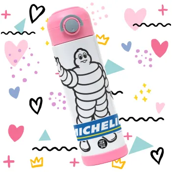 Michelin, Easter candle, Childrens hot water bottle, stainless steel, with safety straw, PINK (500ml)