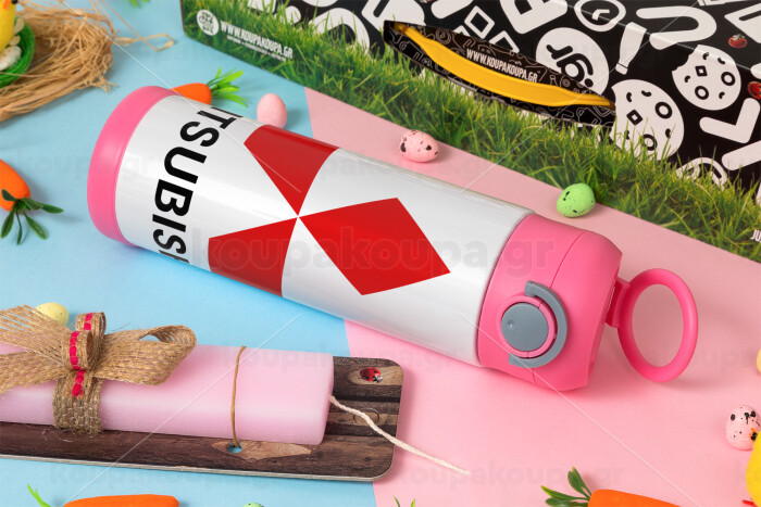 mitsubishi, Easter candle, Childrens hot water bottle, stainless steel, with safety straw, PINK (500ml)