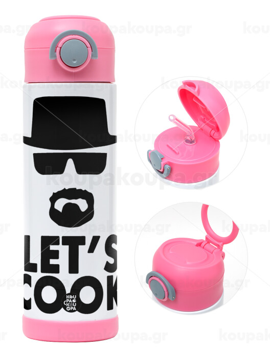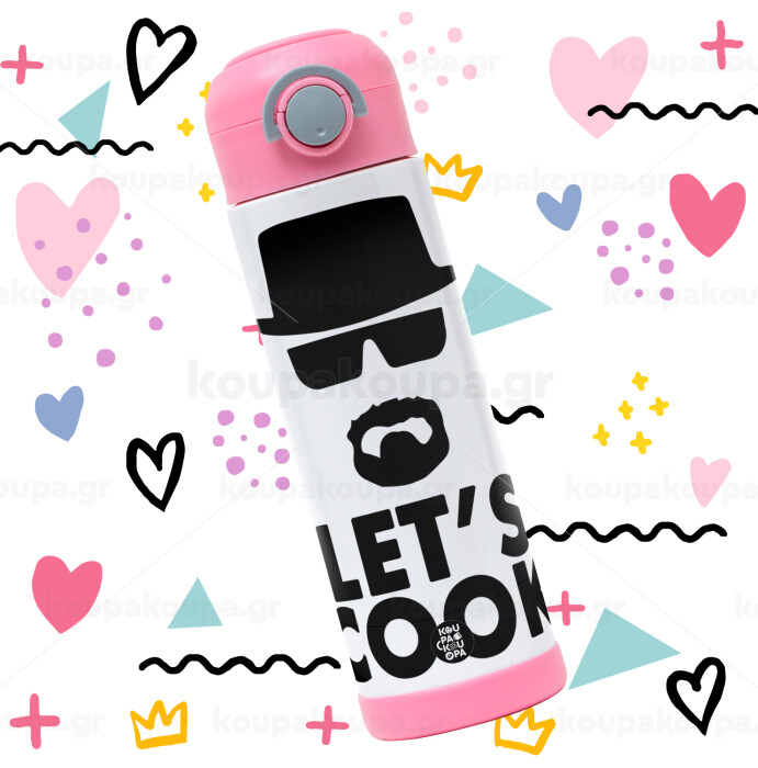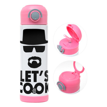 Let's cook, Easter candle, Childrens hot water bottle, stainless steel, with safety straw, PINK (500ml)