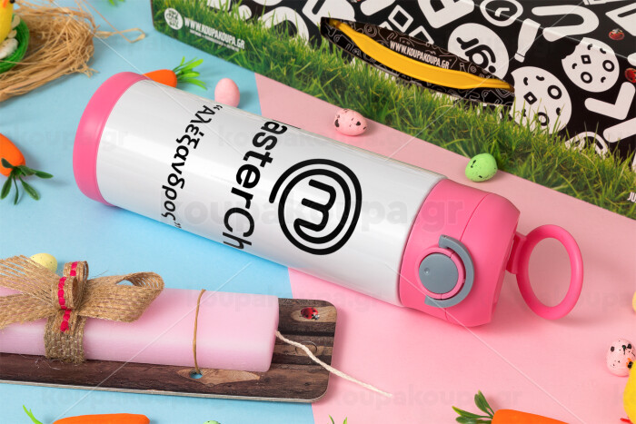 Master Chef, Easter candle, Childrens hot water bottle, stainless steel, with safety straw, PINK (500ml)