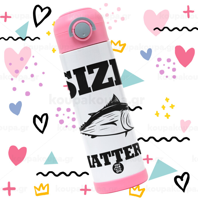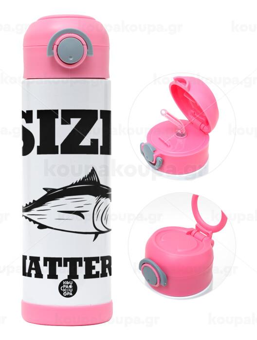 Size matters, Easter candle, Childrens hot water bottle, stainless steel, with safety straw, PINK (500ml)