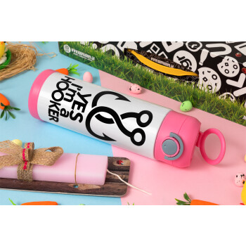 Yes i am Hooker, Easter candle, Childrens hot water bottle, stainless steel, with safety straw, PINK (500ml)