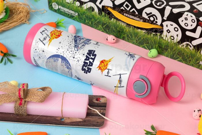 Star wars drawing, Easter candle, Childrens hot water bottle, stainless steel, with safety straw, PINK (500ml)