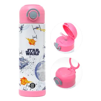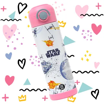 Star wars drawing, Easter candle, Childrens hot water bottle, stainless steel, with safety straw, PINK (500ml)