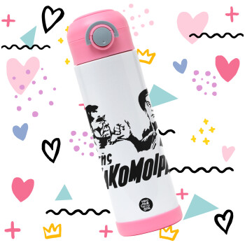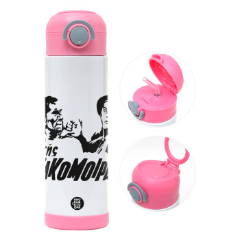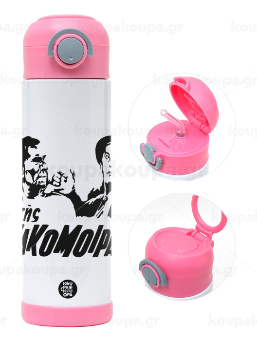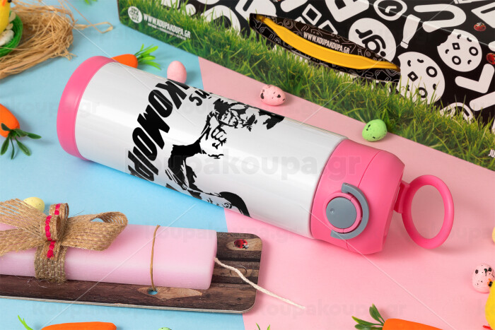 Tis kakomoiras, Easter candle, Childrens hot water bottle, stainless steel, with safety straw, PINK (500ml)