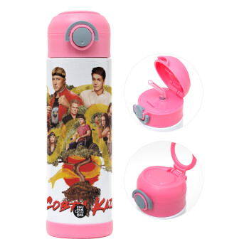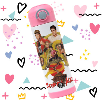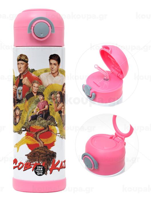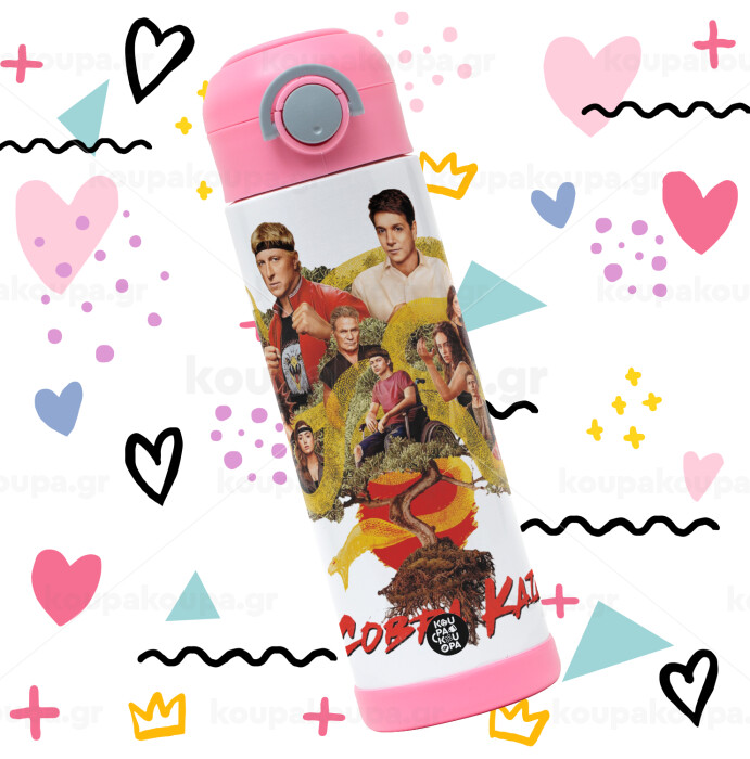 Cobra Kai tree, Easter candle, Childrens hot water bottle, stainless steel, with safety straw, PINK (500ml)