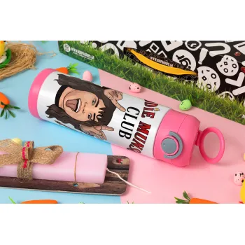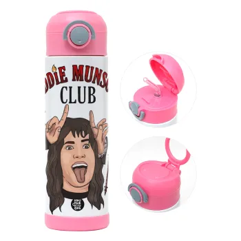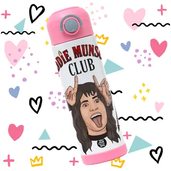 Eddie Munson, Hellfire CLub, Stranger Things, Easter candle, Childrens hot water bottle, stainless steel, with safety straw, PINK (500ml)