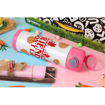Friends Don't Lie, Stranger Things, Easter candle, Childrens hot water bottle, stainless steel, with safety straw, PINK (500ml)