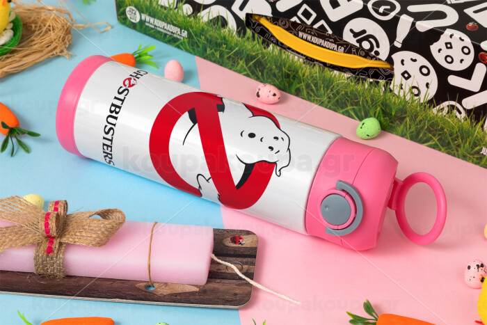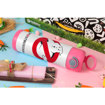 Ghostbusters, Easter candle, Childrens hot water bottle, stainless steel, with safety straw, PINK (500ml)