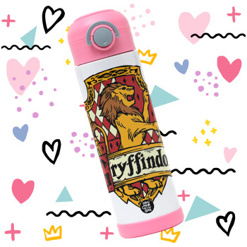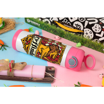 Gryffindor, Harry potter, Easter candle, Childrens hot water bottle, stainless steel, with safety straw, PINK (500ml)