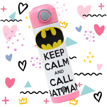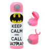 KEEP CALM & Call BATMAN, Easter candle, Childrens hot water bottle, stainless steel, with safety straw, PINK (500ml)